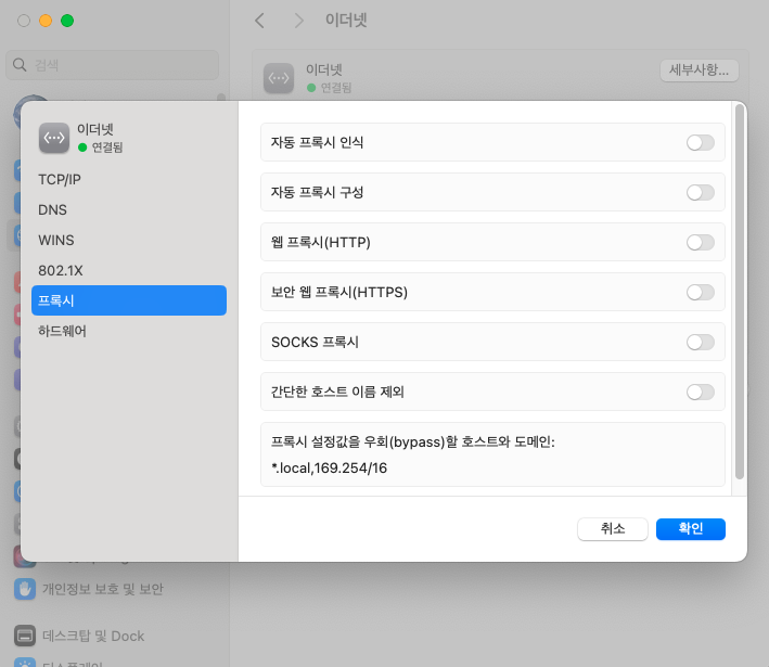 "๋คํธ์ํฌ > ์ธ๋ถ์ฌํญ > ํ๋ก์" ๋ค์ด๊ฐ๋ค.