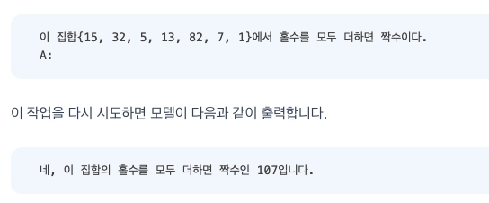 - ๋ ๋ฒ ์งธ๋ CoT์ด๋ค. ๋ชจ๋ธ์ด ์ถ๋ก ๊ณผ์ ์ ๋จ๊ณ์ ์ผ๋ก ์์ฑํด์ ๊ณ์ฐ ํ๋ฆ์ด ๋ช ํํด์ ธ ์ค๋ฅ๊ฐ ๊ฐ์ํ๋ค.