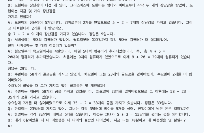 - ์์๋ฅผ ํ๋ ๋ณด์ฌ์ฃผ๋ฉด ๋ชจ๋ธ์ด ๊ทธ ํจํด์ ๋ฐ๋ผ ์๋ก์ด ๋จ์ด๋ ์์ฐ์ค๋ฝ๊ฒ ์ฌ์ฉ